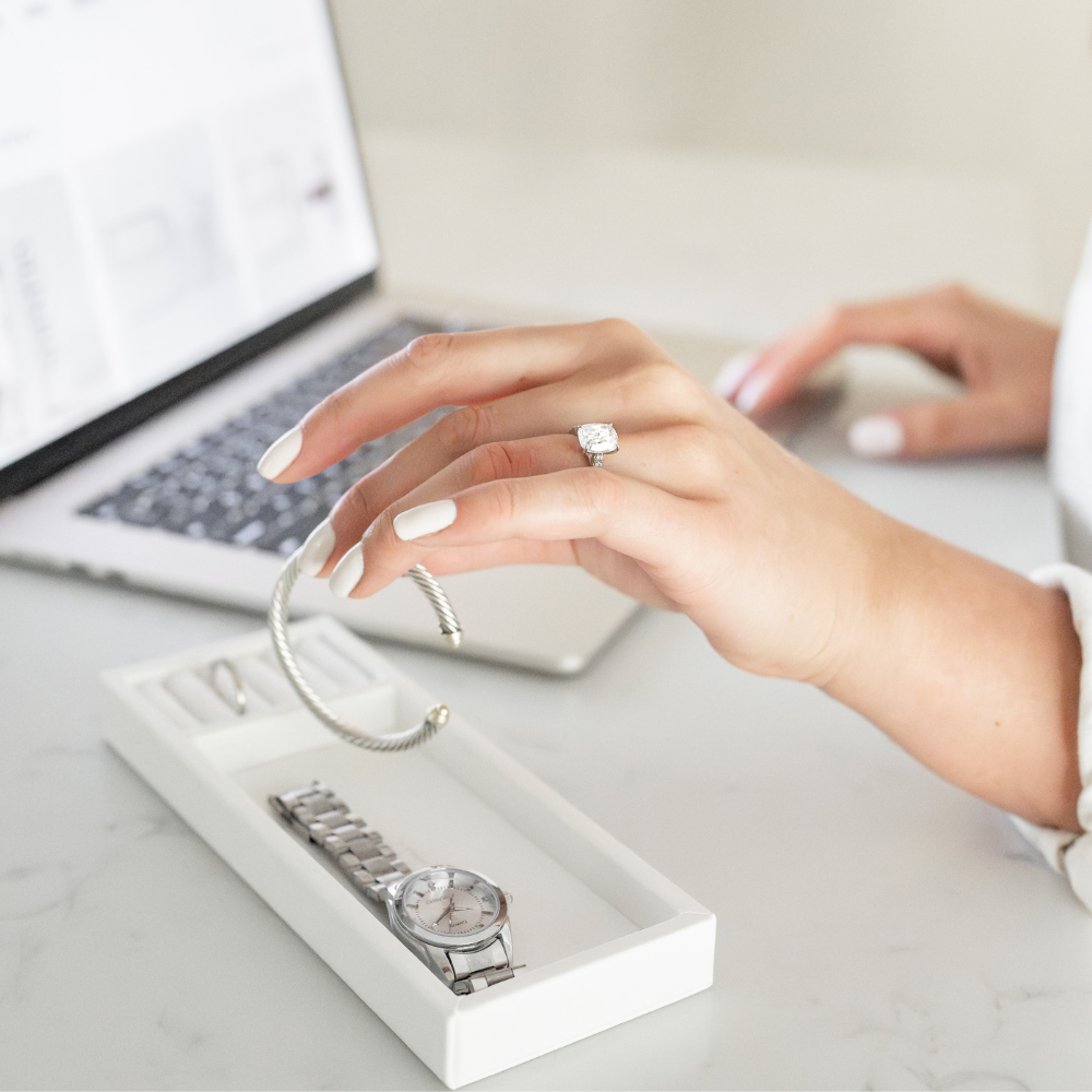 Experience the beauty in simplicity with The Daily Tray, meticulously crafted to hold your daily jewelry collection in an organized and clutter-free manner.